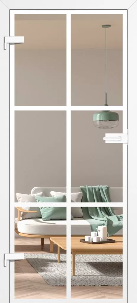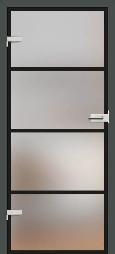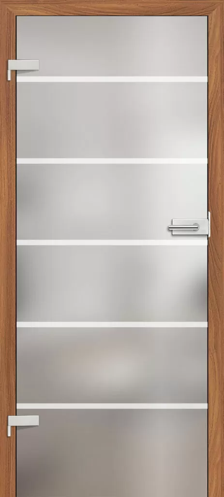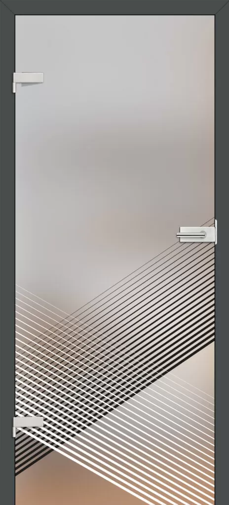 - Foaie de ușă din sticlă securizată de 8 mm, cu sau fără modele decorative externe, sticlă colorată de 8 mm (GRAF 26), sticlă laminată și securizată VSG/ESG (GRAF 65, 66) sau, contra cost, sticlă laminată și securizată VSG/ESG cu modele decorative interne negre pentru GRAF 32, 33, 35, 36, 38, 39, 61, 62.