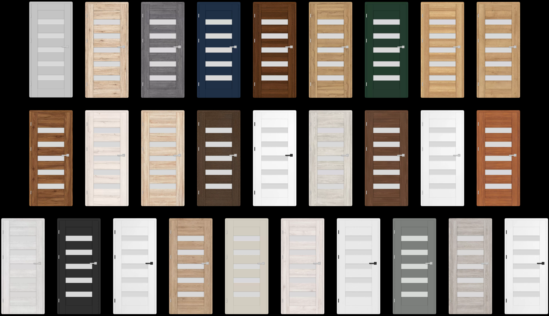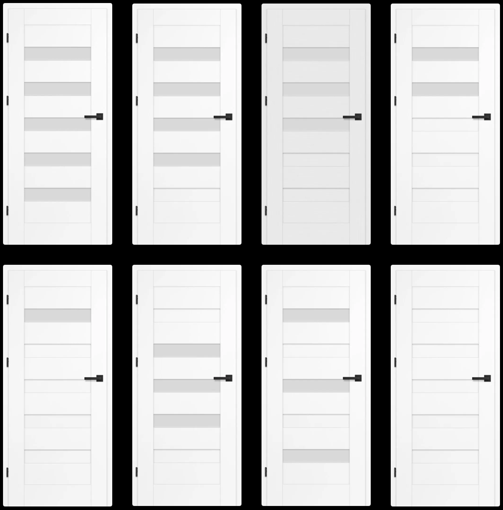 - Canaturi nerebatute: trei balamale ascunse argintii (opțional negre, contra cost); balamalele sunt incluse în prețul tocului ușii.