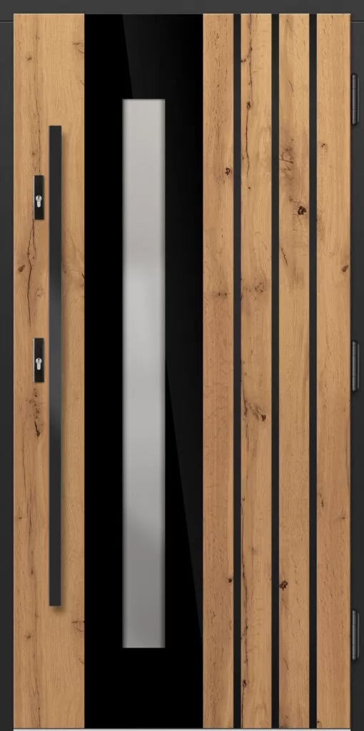 ERKADO P188 este o ușă de intrare care combină stilul modern cu funcționalitatea, oferind un aspect sofisticat și o durabilitate excepțională. Feroneria în culori de inox, auriu, negru sau nichel, modernă sau clasică, completează perfect designul.